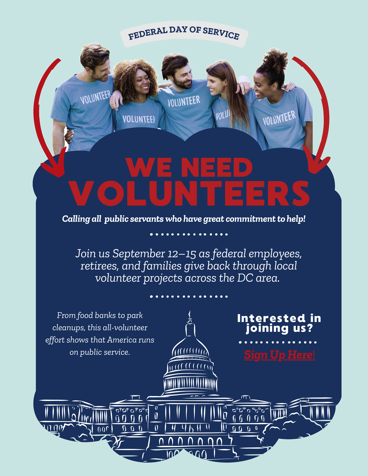 FedsForward, in partnership with United Way, will unite communities across the country for Federal Days of Service, a celebration of the heart, dedication, and impact of those who choose a life of public service. From neighborhood clean-ups to supporting local food banks, each region’s projects will reflect the unique challenges and opportunities of the place we call home.